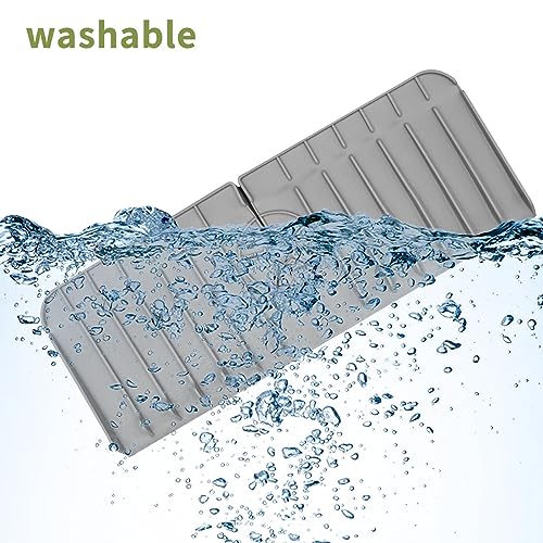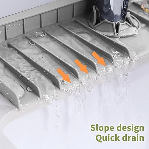 Kitchen Sink Splash Guard, Silicone Faucet Handle Drip Catcher Tray, Rubber drying Mat for Kitchen, Kitchen Guard Gadgets Sink Accessories for Kitchen Counter and Bathroom(Grey)