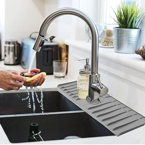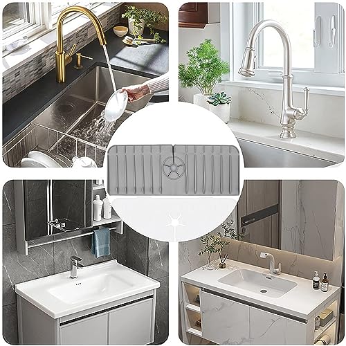 Specification: Kitchen Sink Splash Guard, Silicone Faucet Handle Drip Catcher Tray, Rubber drying Mat for Kitchen, Kitchen Guard Gadgets Sink Accessories for Kitchen Counter and Bathroom(Grey)