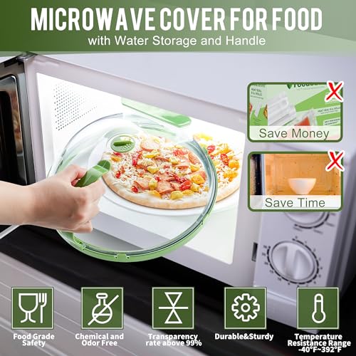Microwave Cover for Food,10″ Upgraded Transparent Microwave Splatter Cover with Heat-Resistant Handle and Water Storage Box to Avoid Dry Out,Kitchen Gadgets and Accessories,home essentials,Gift