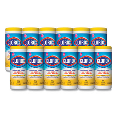 Disinfecting Wipes, 1-Ply, 7 x 8, Crisp Lemon, White, 35/Canister, 12 Canisters/Carton